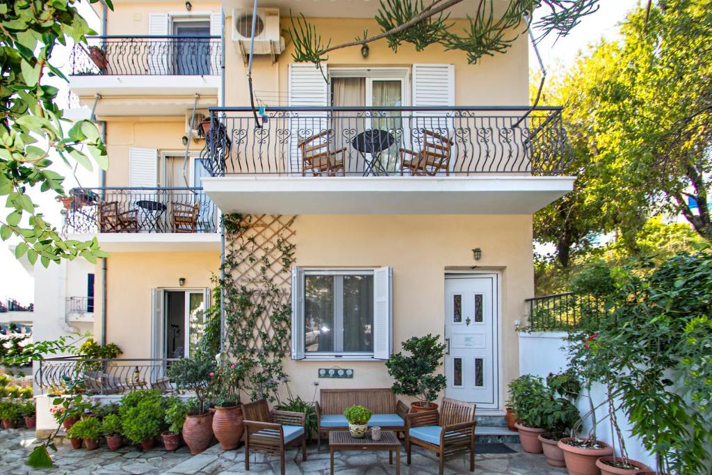 Annis House is located in the heart of Skiathos, only a minute away from Papadiamantis House. Take a break from Skiathos sightseeing, and spend your morning on our garden terrace at Annis House.